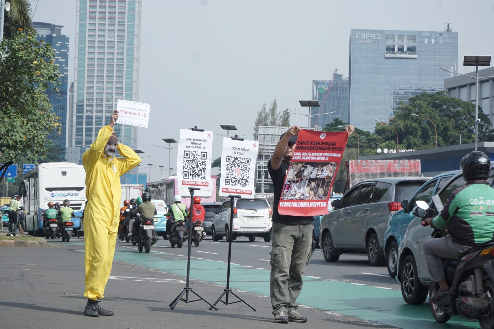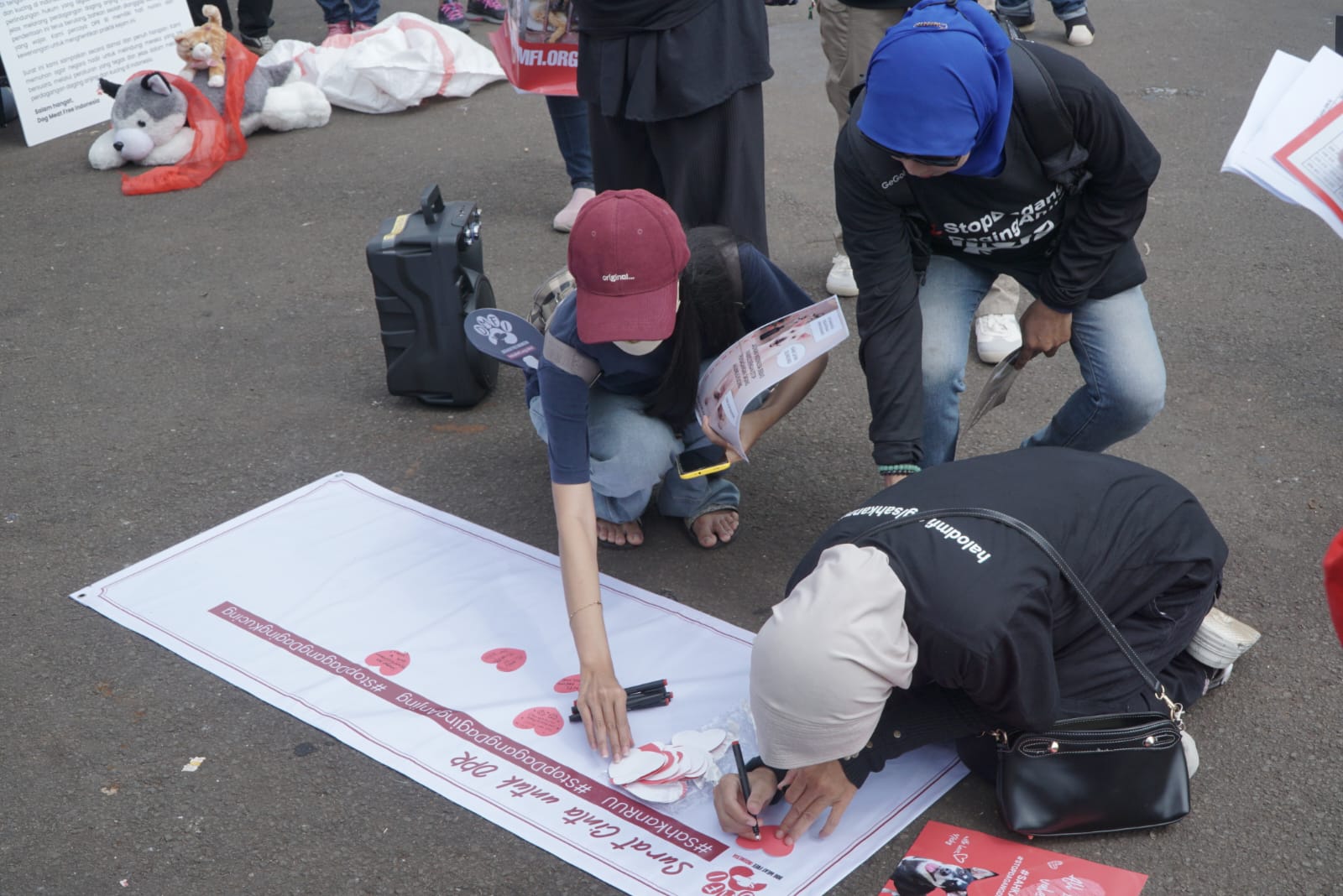 Aksi damai bertajuk “Surat Cinta untuk DPR” ini digelar oleh Dog Meat Free Indonesia (DMFI) sebagai seruan hangat namun tegas kepada wakil rakyat untuk segera mengesahkan RUU Perlindungan Hewan.