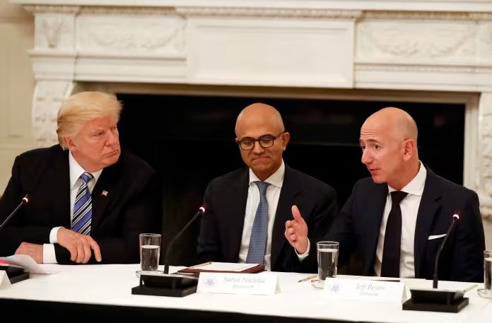 CEO Apple Tim Cook, CEO Microsoft Satya Nadella, dan CEO Google Sundar Pichai, serta yang lainnya, secara terbuka memberi ucapan selamat kepada Trump atas kemenangannya pada bulan November 2024.