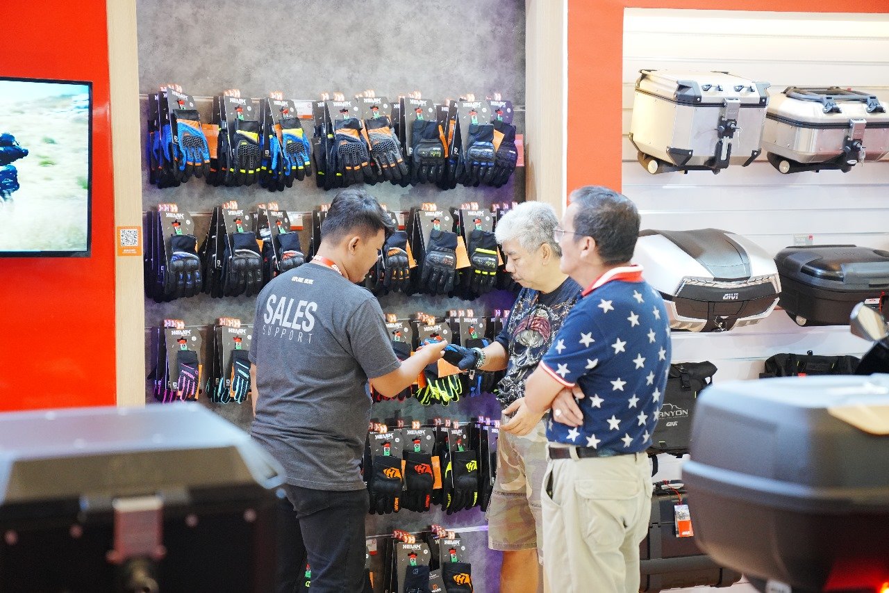 5. Ridding Apparel: Para pengendara dapat tampil lebih keren dengan apparel dari merek Abus, Alpinestars, Arcx, Ballistol, Bikerz, Cardo, Cardo Systems, Deride, Freedconn, Held, Komine, Liquimoly, Respiro, dan Tripfella.