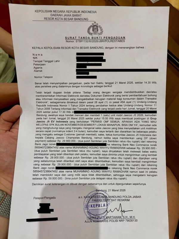 Niat Beli Jaecoo J5 EV, Malah Kehilangan Hampir Rp60 Juta: Modusnya Terstruktur dan Rapi!